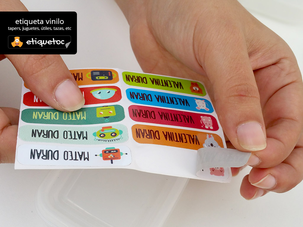 Con etiquetoc puedes diseñar etiquetas personalizadas de la forma más rápida y simple. Las etiquetas son de dos tipos, vinílicas para en útiles escolares, tapers, cuadernos, etc y transferibles para utilizar en ropa, delantales, bolsos, etc.
